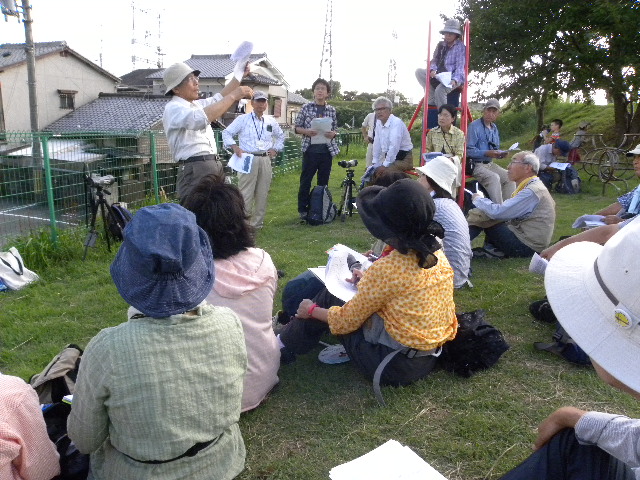 17時に観月橋駅に集合。宇治川沿いの公園に移動して、今日の講座が始まる。 |