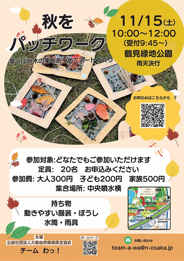 HOME » 自然保護イベント案内 » 11月自然保護イベント案内 » 第33回自然観察インストラクター養成講座受講生企画イベントⅠ 「秋をパッチワーク~葉っぱや木の実をあつめてアートづくり」