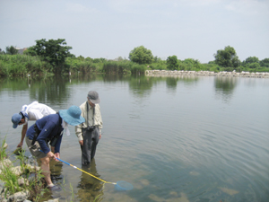 | 第15回・淀川の河川環境(プランクトンと淡水生物) (2007.8.1.) 講座内容 河川改修によりダム湖化した淀川における生物相の現状と淡水プランクトンの観察 講 師 河合 典彦 先生(大阪市立大桐中学校教諭/ 淀川環境委員会委員) 場 所 城北ワンド〜赤川鉄橋 |