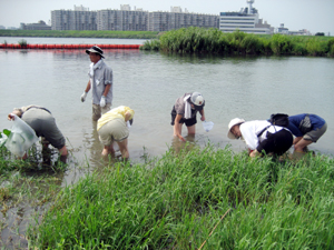 ![]() 手探りで貝を採集 | ![]() イシガイがたくさん採れました。 |