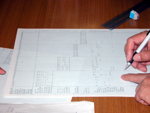 ![]() まず、たくさんの植生調査データすべてを網羅した「素表」をつくる。 |