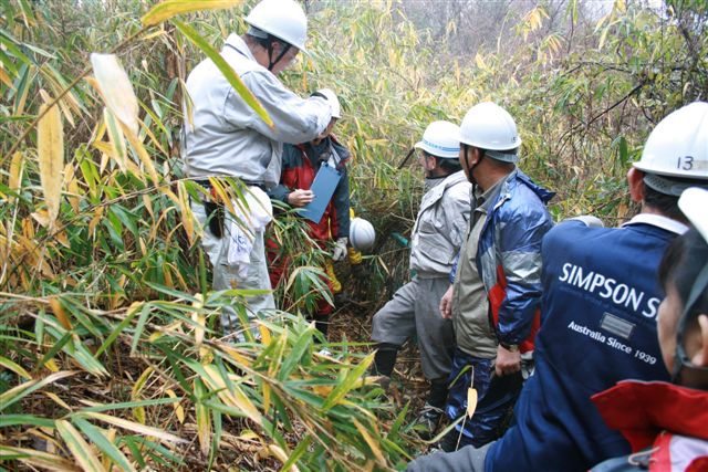 ![]() 3班のテーマは自然観察路の道造り。現在はネザサで覆われている。