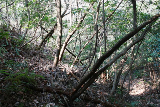 ![]() 下樵りされていない隣の領域。 下樵りした場所も当初はこのような状態だった。 |