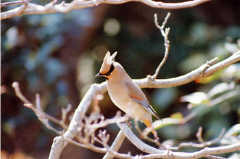 17.5cm 冬鳥 ヒリ ヒリ ヒリ という細い金属的な声に、宇宙人のようなマスク。春先に群れて現れる。彼らが去った後は庭の木の実は丸はだか。餌台はカラッポになってしまう。