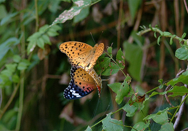 当地では数年前まではこのツマグロヒョウモンが多く見られましたが昨年あたりから少なくなっています。この写真の場所はいつ行ってもツマグロヒョウモンが舞っています。 池田市東山町(2002.9.5.)