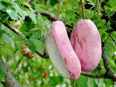 アケビの実が赤紫色に色づきました。近づいてよく見ると、実の陰に、熊蝉の抜殻がまだ葉にしがみ付いたままになっていました。中身が一杯詰まったアケビの実と、中が空っぽの蝉の抜殻が隣り合わせにぶら下がっていて、豊かな実りの秋と空虚な寂寥の秋を、自然は対比して見せてくれました。