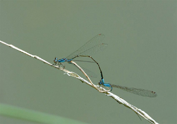 冬を成虫で越したホソミイトトンボ、鮮やかな青色に変わり愛を育む季節となりました