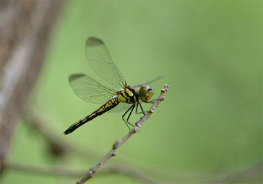 秋の赤トンボの一種リスアカネ(♀)がもう羽化しています。このあと近くの林縁に移動し成熟を待ちます。そして夏の終わりには交尾・産卵が始まります。