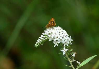 オカトラノオの花でキマダラセセリが一心不乱に吸蜜しています。