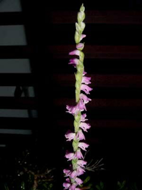ベランダのオウバイの鉢に今年突然に咲きました。 ほんとにどこから飛んできたのか。 芝生のところどころに咲いてるのを以前はよく見ました。 ネジバナ(モジズリ)です。花穂の全長38cm、花数56個の優れものです。 花一つ一つが仰向けに倒れ、捻れてラセン状になってます。