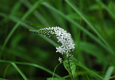 花序を虎の尾に見立てたオカトラノオ、花序が横向けになり先端が少し上向きなっているところが虎がのし歩いている時の尾の姿に似ているのかも知れません。