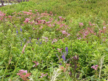シモツケソウ、ルリトラノオ、クガイソウ、ワレモコウなどが咲き乱れる、素晴 らしいお花畑。いつまで見ていても飽きない。