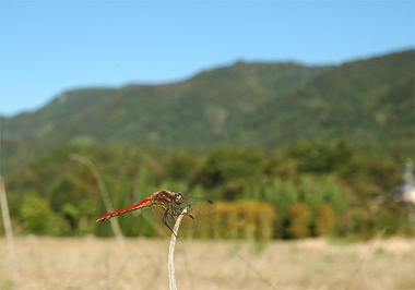 長い暑い夏が突然秋になった感じのこの日、成熟したアキアカネが秋を待っていたかのようにとまっていました。