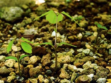 春はいろんな命の誕生の季節です。 日の当たるところでは芽生えのラッシュです。 双葉のころは「何なんだろう」と思いました。 数日後、3枚の小葉の本葉が出ていて「わたしはミツバアケビだよ。」と教えてくれました。