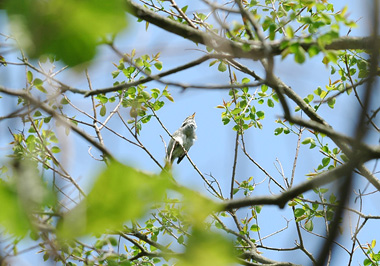 頭上でウグイスのさえずり、どうもこちらに気が付いていないらしい。喉をふくらませてさえずり続けている。