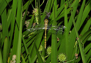 昨年、羽化殻しか採取できず肝心の羽化場面が見られなかったマルタンヤンマ。今年は前日夕方から徹夜の観察でとうとう羽化が見られました。羽化開始は前日の午後11時前、羽化を終えて飛び去ったのは翌午前3時24分でした。