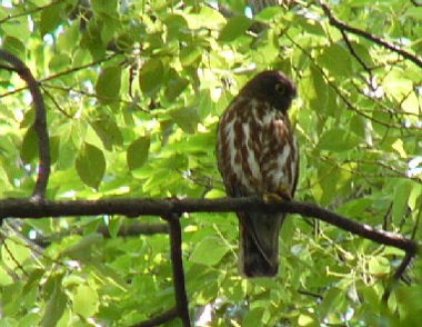 この時期各地でアオバズクの営巣、子育てのニュースを聞くが、京都御苑でも3ヶ所で確認した。 そのうちの1ヶ所で、ここではまだヒナは巣から出て来ず、巣の外で昼間は親がジッと監視していた。