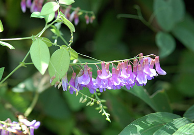 大阪でも稀少になってきたオオバクサフジ、今年は例年になく多くの花を咲かせていました。 この辺り草刈がされずに放置されているからでしょうか、周りの草木に絡まって勢力を伸ばしていました。