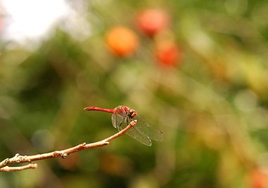 柿がすっかり熟している中、これまた真っ赤なナツアカネが参上。