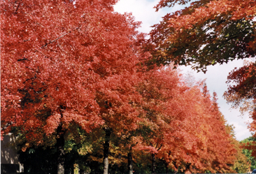 三色彩道の東の端、藤白台保育園前から見ず遠池入口迄の約100mは、タイワンフウが赤く染まり、その彩りはすばらしく、吹田屈指の名所となっている。