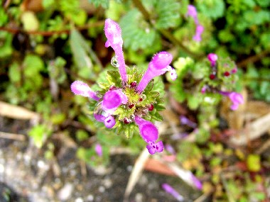 ホトケノザが田圃のあぜや道端でひっそりと春の訪れを告げている。