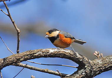 枝から枝へと移動しながら盛んにさえずっているヤマガラ。近くに雌と思われるもう一羽がいるので求愛のさえずりなのか。 時々接近するがすぐ離れ10分ほど鳴き続けていたが結局飛び去る。 上手くいかなかったのか?