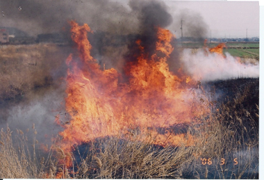 白鳥川のソシ笛ロードを散策中に川岸のヨシ焼きに出会った。 風が吹くと炎に勢いが増して見る見るうちに焼面積が拡がっていった。 また新しい芽生えがあることだろう。