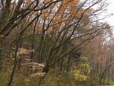 木々の葉はほとんど落葉し、わずかにタカノツメやヤマコウバシが辛うじて葉を残し ている。 このあたりは適度に人の手が入った明るい雑木林で、これから冬を迎える里山が 落ち着いた風情をかもし出している。