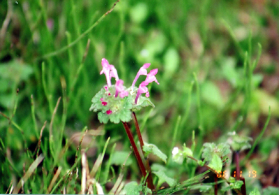 ヨシ笛ロードを散策中に田んぼのあぜでホトケノザに出会った。 ピンク色のかわいい花をつけ、春を待っているようだった。