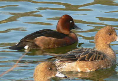 今年の初め頃から姿を見せている珍鳥メジロガモ。光沢のある チョコレート色の頭と真っ白な眼が魅力。