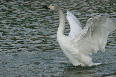 昨年末から迷い込んだコハクチョウの幼鳥。毎日池の端から端へ 飛ぶ練習をしている。早く皆と一緒に北へ帰りたいんやろな。