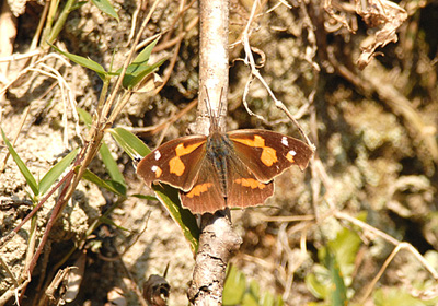 この日は暖かくテングチョウが越冬から目を覚まし土手で日向ぼっこをしていた。この時の気温は10℃ほど、土手の辺りの気温を陽を遮っても16℃あり、直射日光を浴びている状態ではさらに高温になっている。