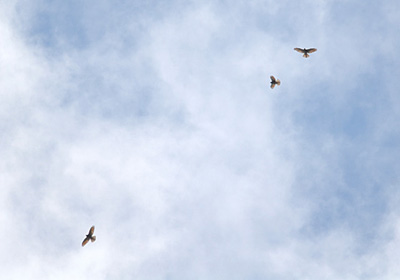この時期サシバの渡りが見られるのでは思ったが案の定サシバを見ることが出来た。ここ3年間いずれも4月の上旬にサシバを初見していたが(2005年は4/5、2006年は4/3)。この日は6羽の群での目撃で当地で一度に6羽見るのは初めて。今がサシバの春の渡りの時期なのであろう。