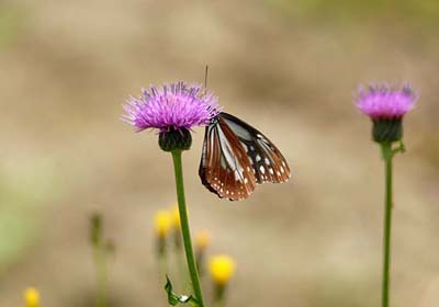 次々に訪れるアゲハチョウの仲間を観察していたところ、思わぬ来訪者が目に入った。渡りをするアサギマダラである。 秋の渡りの時期には五月山にたくさんのアサギマダラが訪れるが、春の渡りの時期に当地で見かけるのは珍しい。