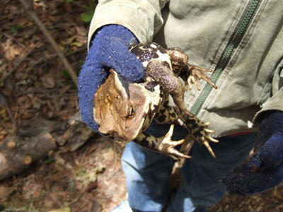5月20日「櫻守の会」主催で行われた「親子森づくり体験」で子どもに捕まりました。可愛いという子どもと嫌がる親子。ガマいわく、おれの身にもなってみろ。 近くでは、ホオノキの花が咲いていました。