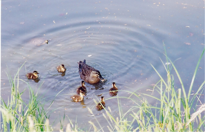 ピアノ池でカルガモの雛が誕生して6羽が愛らしい姿を見せている。また、バンのヒナも誕生していてにぎやかになっている。 この池では池の環境をよくする会が、繁茂しすぎたヒメガマ刈り大作戦を7月7日に予定している。