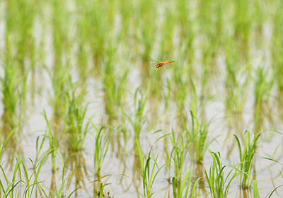 この辺りの田植えは少し遅いが、その田んぼの上を飛ぶウスバキトンボがようやく見られるようになった。 小学校のプールではとっくにウスバキトンボのヤゴが多くいると聞いたいたので、この時期のウスバキトンボはおそらく渡って来てからの二世代目であろう。