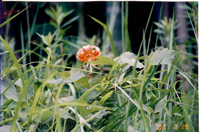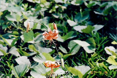 水遠池の緑地にコオニユリが美しい花をつけた。