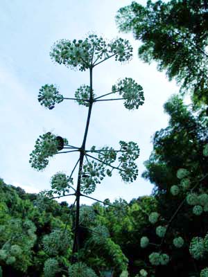 里山はこのウドの花が満開に咲く頃となりました。 ヒョウモンチョウ、ハナムグリ、ハナアブが花の周りを群れ舞っていました。 ちょうど稲穂も稔り、大きな案山子は「私が守る」と叫んでいるようでした