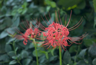 友人に佛隆寺のヒガンバナがきれいと誘われたが、残念ながら他用があって北比良に行った。 でも、琵琶湖湖岸の近くの藪の中で数株の花が迎えてくれた。