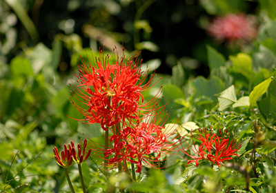 この時期もう開花のピークが過ぎたヒガンバナ。まだ咲いていた川原の土手でひと際赤く輝くヒガンバナがあった。思わずレンズを向けた。