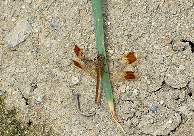 今年から始めているミヤマアカネのマーキング調査。7月28日に捕えたミヤマアカネの翅に油性ペンで書いた個体がこの日も見られ80日生息したことになる。しかし姿を消していた暑い夏の間はいったいどこに行っていたのであろうか。