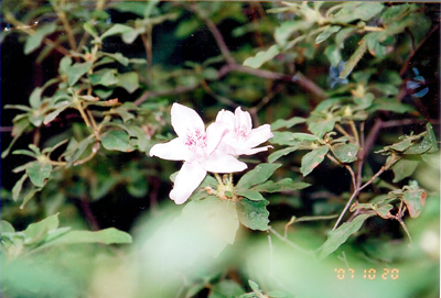 千里北公園の風の道でモチツツジが季節はずれの花をつけた。