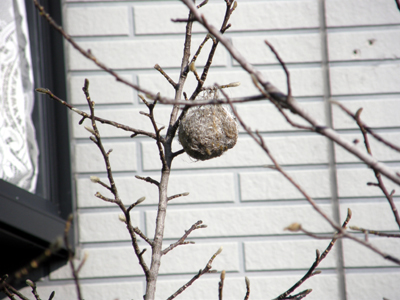 庭のコブシの葉が落ちてメジロの巣が現れました。