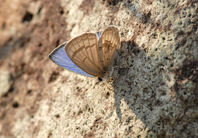 フィリピンなど南方で生息するクロマダラソテツシジミが、今年宝塚市や池田市で発生した事が話題になった。 これまで何度か目にしていたが、12月のこの日雄1頭が日向ぼっこをしているところに出くわした。南方の蝶が寒さにもけっこう耐えているのだと驚く。 ただ動きは緩慢で素手で採る事が出来るほどであった。