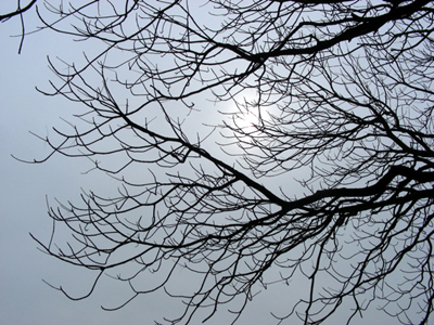 薄く広がった雲を透かしてかすかな太陽の姿。