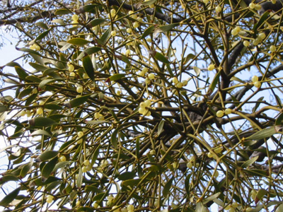 有馬温泉街個人宅庭先のエノキに寄生。隣の家主さんの話では、20数年前に来た時からです。 寄生されたエノキは弱ることなく不思議です。 有馬温泉街では、この他サクラ等にもあちこちで見ることが出来ます。