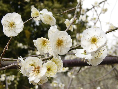 丁度白梅が満開で、あたり一面によい香りを漂わせています。桜の場合は「爛漫と」で すが、梅は「しっとりと」という感じで咲き誇っています。
