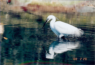 万博公園の小池でコサギが捕食行動をとっていた。 片足で水中をかきまわしながら獲物をねらっていた。 夢中になっているためか、近寄っても逃げる気配はなかった。