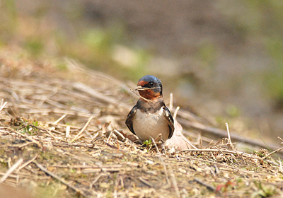 一週間ほど前から毎日巣作りの巣材を運んでいるツバメを目撃していた。 泥が露出している水溜りが巣材にもってこいの場所、で数羽のツバメが近くで藁や枯れ草を咥え水溜りに浸け泥をまぶしている。 写真は枯れ草を咥えたところで、この後水溜りで泥をつけ巣の方角に飛んで行った。